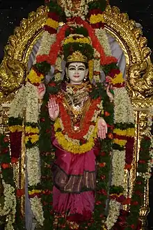 Vasavi Kanyaka Parameshvari is a Hindu goddess, primarily revered by the Komati community of Andhra Pradesh.[1] She is primarily recognised by her adherents as a virgin form of Parvati, and sometimes also identified as a form of Lakshmi in Vaishnava tradition.[2]
