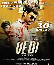Vedi (transl. Cracker) is a 2011 Indian Tamil-language action film directed by Prabhu Deva. The film stars Vishal, Sameera Reddy and Poonam Kaur, while Vivek, Sayaji Shinde, and Urvashi play supporting roles. A remake of super hit Telugu film Souryam, the film was released on 30 September 2011 across 250 screens in Tamil Nadu, 62 screens in Kerala and 28 screens in Karnataka.[1]