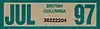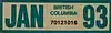 1976 | Orange on white | Beautiful British Columbia | 12-34-AB | 00-00-AA to approximately 25-00-DS | Letters I, O, Q, U and Z not used in serials; this practice continues today.[8] |