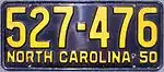 1950 | Embossed golden yellow serial on black plate; "NORTH CAROLINA 50" at bottom | none | 123-456 | 100-001 to 760-000 |
