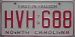 1975–78 | Embossed red serial on reflective white plate with border line; vertical "75" used as separator; "NORTH CAROLINA" at bottom | "FIRST IN FREEDOM" centered at top | ABC-123 | AAA-101 to approximately PMZ-999 | First base to be revalidated with stickers. Monthly staggered registration introduced 1981.[5] Plates from AAA-101 through JAY-999 replaced 1982; all other plates replaced by 1992. |