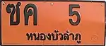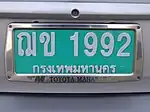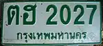 Some beginning with ฌ, ณ with green background and white text are used by service vehicles.