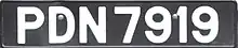 Vehicle registration plates in Trinidad and Tobago are categorised using prefixes based on the type of vehicle and feature up to four succeeding digits. Registration plates in Trinidad and Tobago are supposed to be either white figures on a black background or black figures on a white background. All motor vehicles that are operating in the roads of Trinidad and Tobago are required by law to have a registration plate affixed to the front and rear of the vehicle at all times except during very specific situations. This current system has been present for over 40 years.