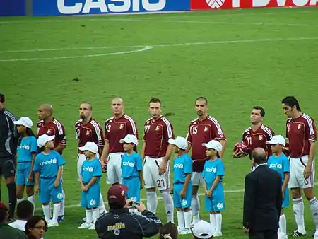 Venezuela lining up for their group match against Peru in 2007. It would become their first victory since the introduction of the modern Copa América in 1975.
