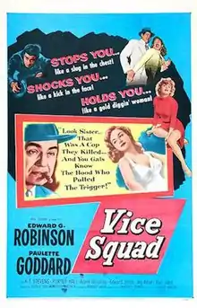 Vice Squad is a 1953 American film noir crime film directed by Arnold Laven and starring Edward G. Robinson and Paulette Goddard.[2] The film is also known as The Girl in Room 17.[3]