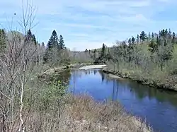 The Victoria River flows onto the west shore of Victoria Bay of lake Mégantic in the municipality of Marston.[2] This confluence is located southeast of the center of the village of Marsboro, southeast of downtown Lac-Mégantic and north of the village of Piopolis. A bridge has been built near the confluence of the Victoria River, at the foot of the "Côte du Bois", between the hamlets of Vieux - Piopolis and Marsboro.