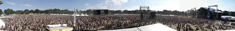 This festival is the largest music festival in France, attracting more than 280,000 festival-goers every year (346 000 in 2023).[1] This festival was created in 1992 in Landeleau, a small village in central Finistère. At that time, less than 500 revellers attended and the festival was more like a private party. The following year, the festival welcomed more than 2000 and that was the beginning of its success story. In 1995, due to lack of space on the original site, the festival moved to Carhaix city center and in 1998, for the same reason, the festival chose a site on the outskirts of Carhaix. In October 2016 the festival organizes an exceptional concert at Central Park in New York City in tribute to the many Bretons who were immigrants to the city in the nineteenth century.