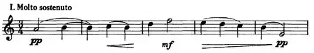 The four parts are in contrasting tempo, slow–fast–slow–fast. Both slow movements, 1 and 3, are marked Molto sostenuto (aber nie schleppend) (but never dragging), both fast movements Vivace.