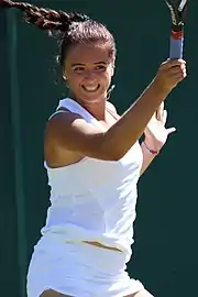 In January 2015, in her debut at the Australian Open, she reached her first Grand Slam third round in singles, while in doubles, she failed in the first round.[6][7] Despite an early loss at the French Open in both singles and doubles, Kužmová then reached her first singles Grand Slam semifinal at Wimbledon, but lost to eventual champion Sofya Zhuk.[9] She also made progress in doubles, winning the 2015 US Open alongside Russian player Aleksandra Pospelova.[10] They defeated Potapova and Kalinskaya on their way to the title. Next year, she failed in defending her US Open doubles title but finished runner-up in singles, losing to Kayla Day.[11] During her junior career, she also won two doubles titles with her younger sister Katarina at the Grade-4 Ziliona Junior Open in August 2015 and 2016.[12]