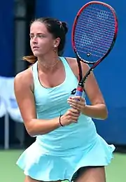 2019 was also successful for Kužmová in the doubles. She reached three WTA doubles finals. The most significant one is Premier-level St. Petersburg Trophy, where she partnered with Anna Kalinskaya and lost to Russian combination Gasparyan and Ekaterina Makarova.[48] However, she won another two finals, two International-level ones. First, in May, she won the Prague Open alongside Kalinskaya defeating Nicole Melichar and Květa Peschke.[49] Then, in July, she won the Bucharest Open final, this time with Kristýna Plíšková. They beat Romanian combination Jaqueline Cristian and Elena-Gabriela Ruse.[50] On 4 February 2019, after reaching the final in St. Petersburg, Kužmová debuted in the top 100, at world No. 94. And on 9 September 2019, after reaching semifinals at the US Open, she entered the top 30 for the first time.[16][51]