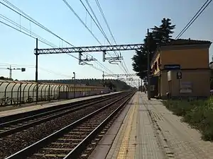 Villamaggiore railway station is a railway station in Italy. Located on the Milan–Genoa railway, it serves the hamlet of Villamaggiore, in the municipality of Lacchiarella.
