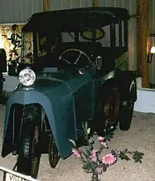 The first 4HP Villard was constructed in 1923.[2] It appeared to be a late-comer to the Cyclecar boom that had followed the First World War.[1] It had only three wheels, with the single wheel, at the front, providing both the traction and the steering.[2] The wheelbase was of 1,850 mm (72.8 in) and the two-stroke engine of 345cc.[2]