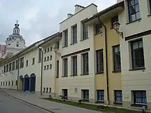 Gymnasium students wore a school uniform and a hat with gymnasium's initials.[25] The students were active and organized various music and theater performances, played sports, had a scouting group and a Catholic group Atžala.[11][25] On several occasions, students performed for official delegations visiting from Kraków, Lviv, Silesia to showcase the culture of Vilnius Region.[3] The school also emphasized religious education. Students participated in days-long Spiritual Exercises at the Church of Saint Nicholas and processions to Vilnius Calvary.[26]