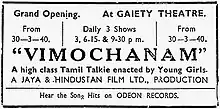 - 1 2 "Vimochanam". The Indian Express. 30 March 1940. p. 3. Retrieved 8 February 2020.
