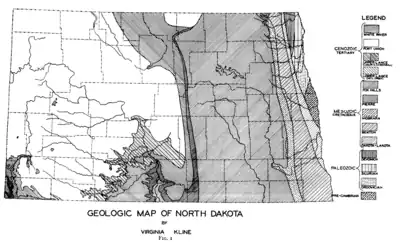 - 1 2 3 4 Kline, Virginia H. (1942). "Stratigraphy of North Dakota". Bulletin of the American Association of Petroleum Geologists. 26: 336–379.