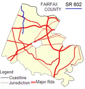 State Route 602 in Fairfax County, Virginia is a secondary state highway which traverses the northwestern portion of the county.[1] SR 602 is the main road through Reston, and connects with SR 608 (West Ox Road), SR 267 (Dulles Toll Road and Dulles Access Road), SR 606 (Baron Cameron Avenue), and SR 7 (Leesburg Pike). All these connections provide ample commuting opportunities for the residents of Reston and the residents of neighboring areas.