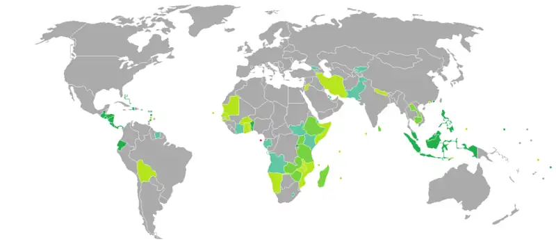 Visa requirements for Santomean citizens are administrative entry restrictions by the authorities of other states placed on citizens of São Tomé and Príncipe. As of 2 July 2019, Santomean citizens had visa-free or visa on arrival access to 57 countries and territories, ranking the Santomean passport 86th in terms of travel freedom (tied with passports from Mauritania and India) according to the Henley Passport Index.[1]
