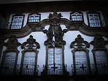 The lordship of Paço de Nespereira can be traced to the Middle Ages, to the Amaral-Cardoso-de-Menezes family. In 1538, King John III provided Pedro Cardoso do Amaral (and by extent his family) the hereditary title, to the contador-mor of the Kingdom, an agnate descendant of the royal family of the Kingdom of León.[1] The hereditary seat of the Viscounts of Paço de Nespereira is the medieval Paço de Nespereira, an estate and gardens in the civil parish of Nespereira, municipality of Guimarães.[1] It was only in the second half of the 16th century, the Paço de Nespereira began bearing the family shield over the main doorway (sometime around 1560).[1]