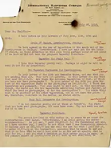 James Deering's letter to Paul Chalfin, discussing purchase of tapestries