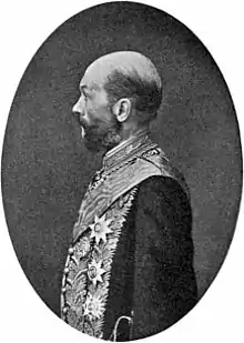 Nabokov was born on 22 April 1899 (10 April 1899 Old Style) in Saint Petersburg[lower-alpha 1] to a wealthy and prominent family of the Russian nobility. His family traced its roots to the 14th-century Tatar prince Nabok Murza, who entered into the service of the Tsars, and from whom the family name is derived.[9][10]: 16 [11] His father was Vladimir Dmitrievich Nabokov (1870–1922), a liberal lawyer, statesman, and journalist, and his mother was the heiress Yelena Ivanovna née Rukavishnikova, the granddaughter of a millionaire gold-mine owner. His father was a leader of the pre-Revolutionary liberal Constitutional Democratic Party, and wrote numerous books and articles about criminal law and politics.[12] His cousins included the composer Nicolas Nabokov. His paternal grandfather, Dmitry Nabokov (1827–1904), was Russia's Justice Minister during the reign of Alexander II. His paternal grandmother was the Baltic German Baroness Maria von Korff (1842–1926). Through his father's German ancestry, Nabokov was related to the composer Carl Heinrich Graun (1704–1759).[13]