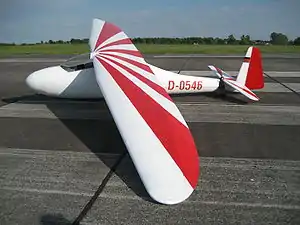 The Lo-100 is an aerobatic glider of classic wood and fabric construction well suited to amateur building methods. The designation Lo was bestowed by the designer Alfred Vogt in memory of his brother Lothar Vogt, with whom he had developed the predecessor model Lo-105 Zwergreiher ('dwarf heron'). The first flight of the prototype took place in 1952 at the Klippeneck. An example is on display at the Gliding Heritage Centre.