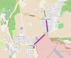 Voivodeship Road 101 (Polish: Droga wojewódzka nr 101, abbreviated DW 101) is a former voivodeship road. It ran through the Pomeranian Voivodeship from voivodeship road 100 in Pierwoszyno to Kosakowo where there is the new international airport.[1] The route was concurrent with voivodeship road 100 on its entire length.