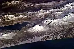 This astronaut photograph illustrates some of the volcanoes on Russia's Kamchatka Peninsula.
