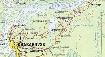Vyatskoye (Russian: Вя́тское) (alternatively known as Viatsk or Viatskoe) is a small fishing village in Khabarovsky District, Khabarovsk Krai, Russia, located on the east side of the Amur River, 70 kilometers (43 mi) northeast of Khabarovsk. The 76th Radio Technical Brigade is stationed there.