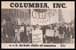 The direct forerunner of the Du Bois Clubs was the Progressive Youth Organizing Committee (PYOC), established in April 1959, and Advance, the New York City-based youth organization which the PYOC had sprung.[1] Under the aegis of the PYOC, in 1961 a small group of radicals in San Francisco established themselves as the "W.E.B. Du Bois Club."[2] This small group proved the inspiration for sister Du Bois Clubs across the bay in Berkeley and at San Francisco State College.[2] The next year, a campus chapter was organized at UCLA in Los Angeles.[2]
