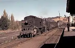 To haul the concentrates the New South Wales Government Railways modified 80 G class open wagons by permanently closing the bottom discharge doors to form the GC wagon. These were run in block trains of 16 wagons making a load of 1,020 long tons (1,040 t). These were hauled by a single 49 class diesel locomotive from Broken Hill to Parkes, the loading being 200 tons greater than the maximum allowed for the 49 class. At Parkes a 36 class and AD60 class Garratt took over for the journey to Molong where the 36 was replaced by another AD60 for the journey to Lithgow. A 46 class electric locomotive took the train from Lithgow to Gosford (the then limit of electrification) where another AD60 would take over to Sulphide Junction.[1]