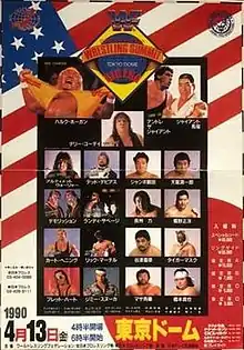 At WrestleMania VI, the Ultimate Warrior defeated Hulk Hogan to win the WWF World Heavyweight Championship just two weeks prior to the Wrestling Summit Show.[12] The Tokyo Dome show would mark Warrior's first high-profile championship defense.[10] In the same vein, Demolition (Ax and Smash) had won the WWF World Tag Team Championship at WrestleMania VI,[12] but their championship was not on the line in the semi-main event.[10]