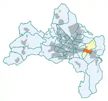 Waldsee is an eastern district of Freiburg im Breisgau, Baden-Württemberg, Germany, with a population of around 5,400 inhabitants. It is named after the local recreational area of the same name. It lies between the districts Wiehre and Oberau in the west and Littenweiler and Ebnet in the east. In the north and the south, it is bordered by the Dreisam Valley mountains. The Dreisam flows through Waldsee from the east to the west and forms the northern boundary of the residential development area here.