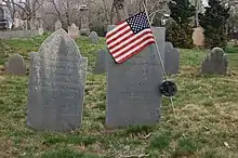 In August 1774, town meetings became illegal in Massachusetts, but Walpole defied authority and held one on August 29, 1774.[4] At this meeting, the town chose "Deligats" to meet committees of other towns in Suffolk County "in order to Consult what measures is Proper to be taken for the Safety of the County."[4] Nathaniel Guild, Enoch Ellis, and Dr. Samuel Cheney were chosen.[4]