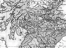 A 19th-century map of the diocese of Dunblane and its surrounding dioceses. Abernethy, although physically separate from most of the rest of the diocese of Dunblane, was nevertheless part of that diocese.