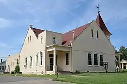 It was deemed significant as "one of the oldest remaining social institutions in the black community of Muskogee"; it "is the oldest African Methodist Episcopal Church and the second oldest black Protestant church in Muskogee". It is a one-and-a-half-story 90 by 44 feet (27 m × 13 m) church, built of brick laid in running bond, painted yellow.[2]