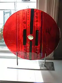 Tack fusing is the joining together of glass, with as little change to the shape of the pieces as possible.[2] Tack fusing may be used either decoratively, or to assemble a large piece of glass from laminations.
