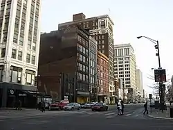 Washington Street–Monument Circle Historic District is a national historic district located at Indianapolis, Indiana, United States, covering the first two blocks of East and West Washington and Market streets, the south side of the 100 block of East Ohio Street, Monument Circle, the first block of North and South Meridian Street, the first two blocks of North Pennsylvania Street, the west side of the first two blocks of North Delaware Street, the east side of the first block of North Capitol Avenue, and the first block of North Illinois Street. In total, the district encompasses 40 contributing buildings and 2 contributing structures in the central business district of Indianapolis centered on Monument Circle. It developed between about 1852 and 1946, and includes representative examples of Italianate, Greek Revival, and Art Deco style architecture.