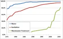 Water coverage during this period increased substantially from 78% in 1976 to 98% in 1988. Sewer coverage increased from 52% in 1976 to 82% in 1988.[17]