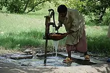 In September 2009 the government approved the National Drinking Water Policy that aims at providing safe drinking water to the entire Pakistani population by 2040, including the poor and vulnerable, at an affordable cost.[42] A main objective is a clearer separation between the functions of service provision and regulation. The right to water for drinking precedes all other uses, like industrial or agricultural water use. Women are recognized as main actors of domestic water supply, and their active participation in the sector is sought. In accordance with the LGO, the document highlights the responsibility of local governments to provide drinking water. The policy is expected to be reviewed and updated every five years to examine its implementation and efficacy and to adapt it to the changing situation in the country.[43]