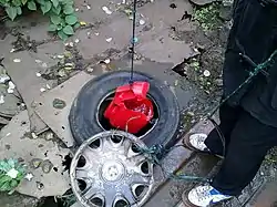During indicents of water contamination, people sometimes revert to the use of shallow wells such as this one.