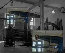 The Henry Ford Museum in Dearborn, Michigan houses a replica of a 1788 Watt rotative engine. It is a full-scale working model of a Boulton-Watt engine. The American industrialist Henry Ford commissioned the replica engine from the English manufacturer Charles Summerfield in 1932.[18] The museum also holds an original Boulton and Watt atmospheric pump engine, originally used for canal pumping in Birmingham,[19] illustrated below, and in use in situ at the Bowyer Street pumping station[20] from 1796 until 1854, and afterwards removed to Dearborn in 1929.