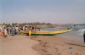 Wave-crashers, or “Mbeukk-mi” in Woloff, are long wooden boats painted in bright blue or yellow. They are constructed in West Africa, more precisely along the Senegalese shoreline (and perhaps Gambia, and some other countries too).[1]