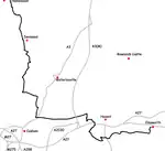 These maps show the footpath in relation to nearby major roads. Maps are not on the same scale.