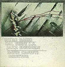 In 1984 and 1985 the California State University, Los Angeles Music Department and CSULA Associated Students decided to fund LP recordings of the jazz ensemble to better serve as a teaching tool for student music, jazz groups. We're Back! is the second of six albums to come from CSULA during the 1980s featuring the award-winning CSULA #1 Jazz Ensemble.[4] The LP contains tracks from the #1 CSULA Jazz Ensemble to include compositions of three students and from the two directors (professors David Caffey and Bob Curnow).
