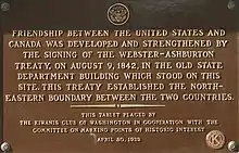 Ten months of negotiations for the treaty were held largely at the Ashburton House, home of the British legation on Lafayette Square in Washington, D.C. The house has been designated a U.S. National Historic Landmark.