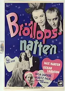 Wedding Night (Swedish: Bröllopsnatten) is a 1947 Swedish comedy film directed by Bodil Ipsen and starring Max Hansen, Sickan Carlsson and Inga Landgré.[1] It was shot at the Sundbyberg Studios in Stockholm. The film's sets were designed by the art director Max Linder. It is an adaptation of the 1944 British play Is Your Honeymoon Really Necessary?.