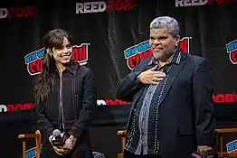 The creative team sought a Latina to play the role of Wednesday Addams in order to align with character Gomez Addams's heritage, an aspect of the character that was already worked into the series' script.[26] In May 2021, Jenna Ortega, who is of Mexican and Puerto Rican descent,[26] was cast in the role.[27] Millar stated that, upon their first Zoom call together, the creative team knew that "nobody else on this planet" was better suited to portray the character.[28] Ortega said that she was initially hesitant about joining the project due to her past work in teen-oriented Disney Channel shows[29] and her plans to prioritize film over television work, but decided to join in after meeting Burton through Zoom.[30] In the beginning of August of that year, Luis Guzmán was cast to guest-star as Gomez Addams,[17] and Catherine Zeta-Jones was cast as Morticia Addams in an undisclosed capacity.[31] Later that month, Thora Birch, Riki Lindhome, Jamie McShane, Hunter Doohan, Georgie Farmer, Moosa Mostafa, Emma Myers, Naomi J. Ogawa, Joy Sunday, and Percy Hynes White were announced to be cast as series regulars.[32] Myers initially auditioned for the titular role before she was cast as Wednesday's roommate Enid.[33]
