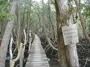 Sustainable building practice that supports ecological health and proper filtration: Boardwalks prevent compaction, erosion, and ecological damage, all the while providing significant habitat to a variety of wildlife. Contrasts significantly to local islands, whose artificial beaches negatively impact natural reef ecosystems.