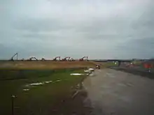 The railway embankment was largely completed over a length of around 5.5 km by early December 2009. The construction of the last section, including the connection to the Berlin–Dresden line, was carried out during a full closure of the Großenhain–Radebeul-Naundorf section for one year from mid-December 2009.