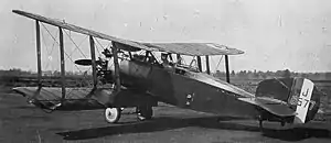 The Westland Weasel was designed by Westland Aircraft of Yeovil to meet the Royal Air Force's Type IIIA Specification for a two-seat fighter/reconnaissance aircraft to replace the successful Bristol Fighter. An order for three prototypes was placed in April 1918, together with orders for competing designs from Bristol (the Badger) and Austin Motors (the Greyhound).[1] The Weasel was a two-bay biplane of wood and fabric construction, with the pilot and observer/gunner seated close together in separate cockpits, with the upper wing above the pilot being cut away to improve the upwards view. Armament was similar to the Bristol Fighter, with two synchronised Vickers guns and one or two Lewis guns for the observer.[2][3] Like the other two competitors, the Weasel was powered by the officially encouraged ABC Dragonfly 9-cylinder air-cooled radial engine.[1]